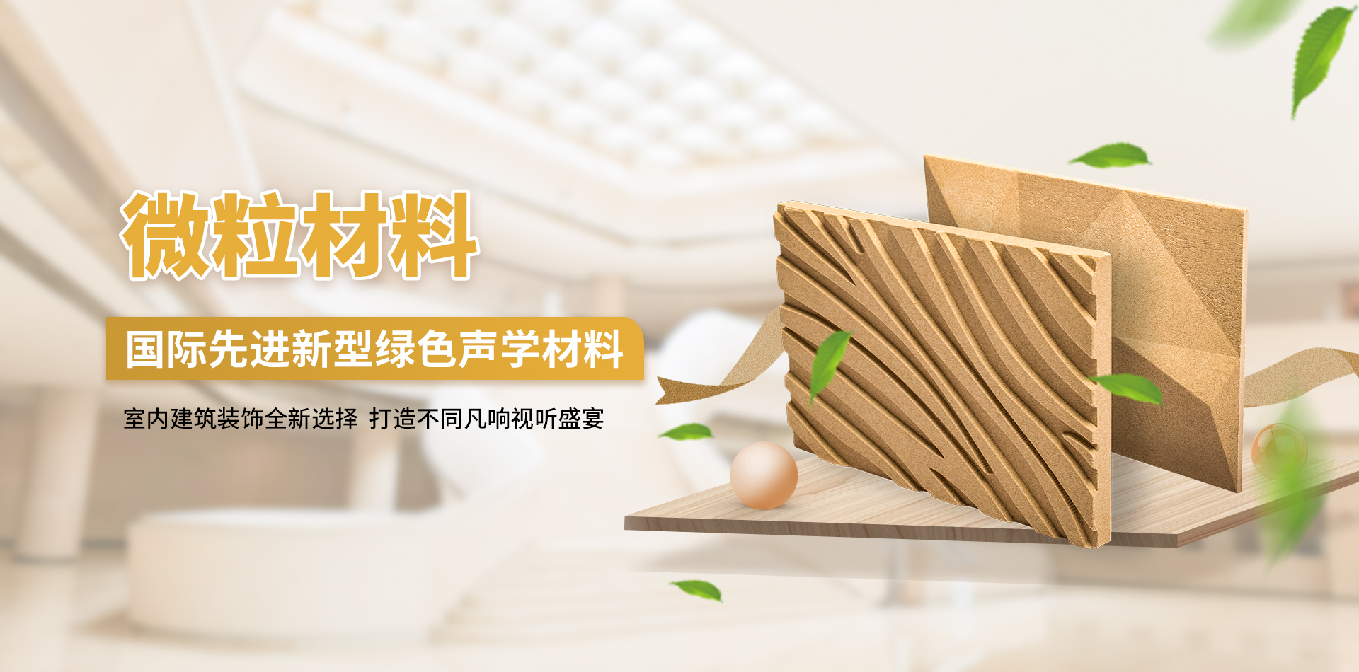 微粒材料是一種新型綠色裝飾材料,具備優(yōu)異的聲學(xué)性和物理性能。該材料是以天然砂?;蚪?jīng)環(huán)保處理的固廢顆粒為骨料,以環(huán)保膠凝劑,通過壓振工藝,生產(chǎn)的具有大量相互連通的微小空隙的多孔材料。